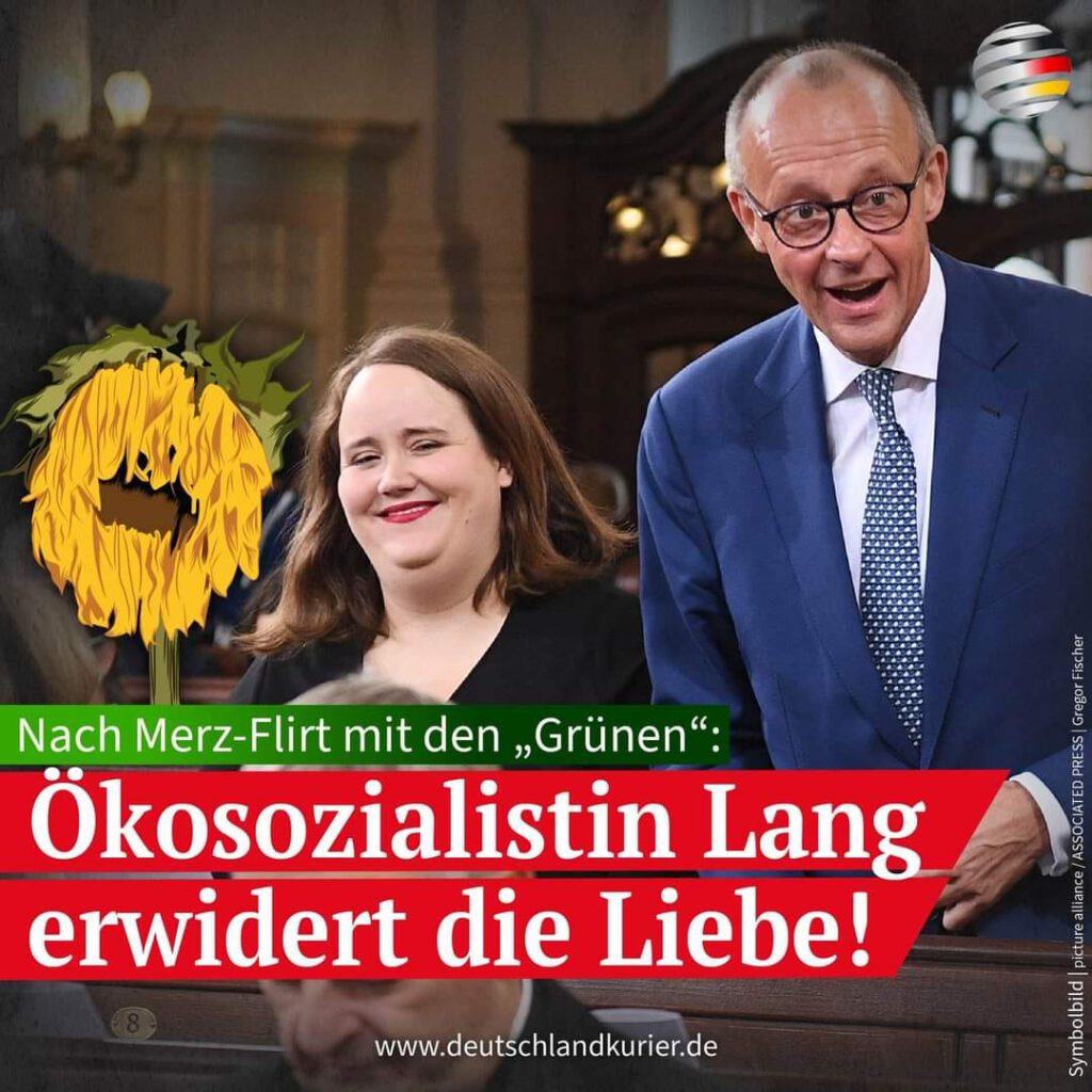 Wer CDU wählt, kriegt Grün! Deutschlandkurier: Nach Merz-Flirt mit den „Grünen“: Ökosozialistin Lang erwidert die Liebe! Union und „Grüne“ wären auch nach Ansicht von „Grünen“-Chefin Ricarda Lang geeignete Koalitionspartner mit Blick auf die Bundestagswahl 2025. Die Ökosozialistin reagierte im Interview mit dem TV-Sender „Welt“ freudig erregt auf Äußerungen von CDU-Chef Friedrich Merz, der am Wochenende […]